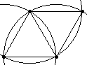 | 3. | Na dowolnym boku tego trójkąta konstruuję znów trójkąt równoboczny na zewnątrz poprzedniego i mam gotowy romb o krótszej przekątnej równej 3 cm i o mierze jednego z kątów równej 60o. | ![]() |