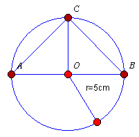 Wierzchołki trójkąta prostokątnego równoramiennego leżą na okręgu o promieniu 5cm. Oblicz polen tego trójkąta.